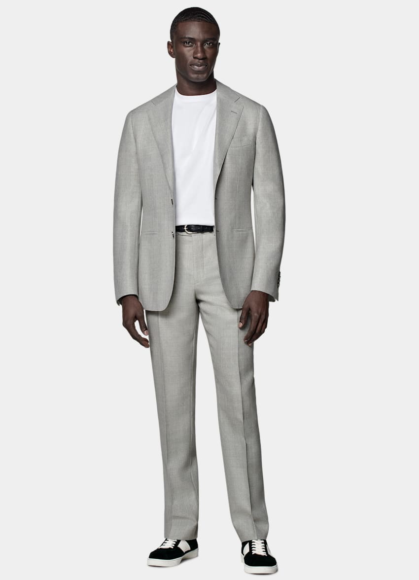 SUITSUPPLY All Season Pure Wool by Vitale Barberis Canonico, Italy Light Grey Perennial Tailored Fit Havana Suit