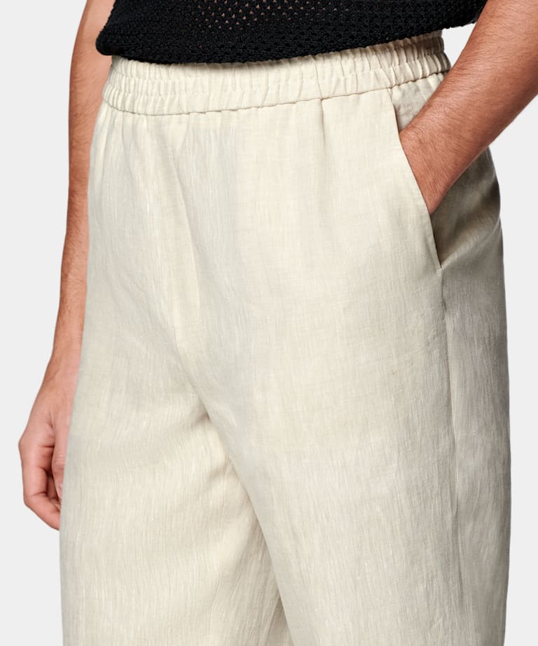 Beat the heat in style with Suitsupply's summer trousers, expertly crafted from premium linen, lightweight cotton, and innovative performance blends. These pants are designed with warm-weather comfort in mind, featuring breathable fabrics, unlined constructions, and moisture-wicking properties. The tailored fits range from slim to regular, ensuring a flattering silhouette whether you're dressing for business casual or vacation elegance. From crisp office-appropriate styles to relaxed drawstring designs, each pair is made with thoughtful details like reinforced seams and adjustable waistbands for all-day comfort in rising temperatures.